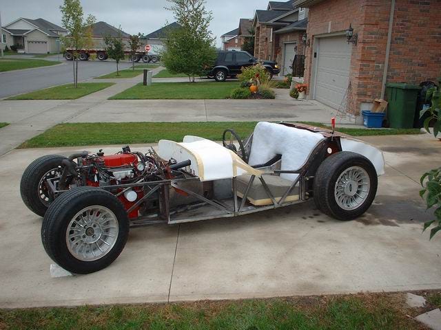 I picked up the steel tube Oct 9 2003, already had built the motor and stripped a1988 Tbird and 72 MGB for parts.